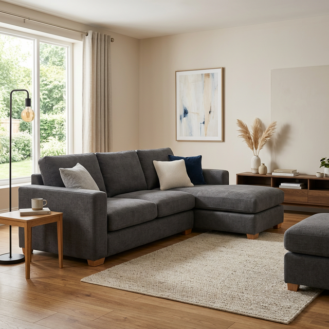 Premium high-density foam cushions (45kg/m³) wrapped in a hypoallergenic fibre layer for cloud-like comfort. Kiln-dried hardwood frame with reinforced corner joints ensures lasting durability. All fabrics are OEKO-TEX® certified.